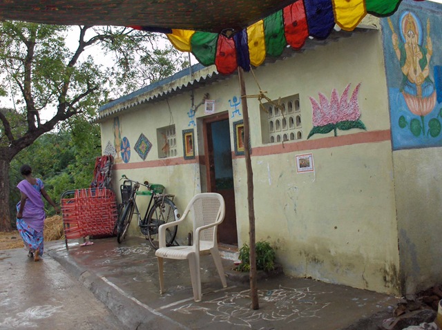 In the village street, a canopy is set up in front of Mother’s house (to the right). Another village house is shown in the picture on the right.