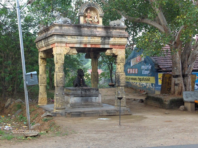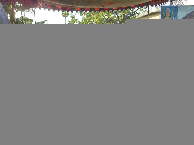 This is a small village with no walled temple. Rather there is an outside shrine, not shown here, with the tree and platform next two it. These ceremonies are usually preformed under a tree, in a special place in Hindu temples.
