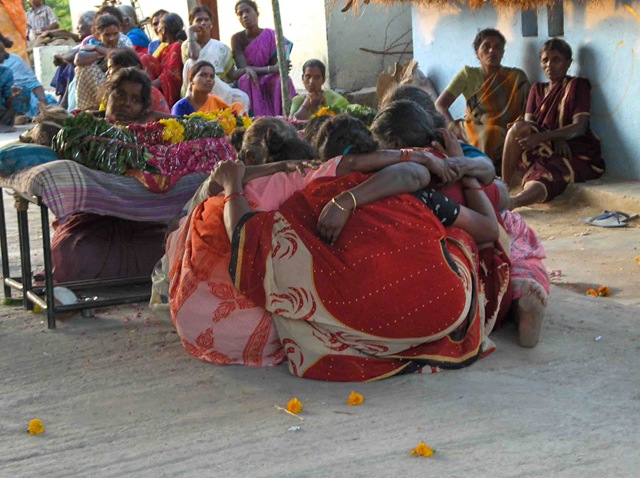 Village women are gathered to cook. These will not be residents of the household of the dead mother, since these are considered as still ‘unclean,’ so cannot be involved with food preparation.