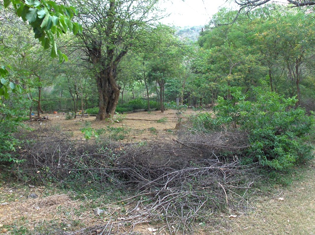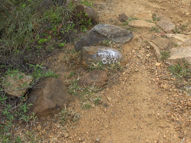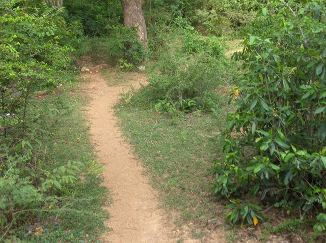 This posting continues with the walk where the initial posting ended, from the path near the access point where Perumpakkam Road meets Bangalore Road. This is the place where many walkers enter onto the Inner Path. This part of the Inner Path goes by the path up to Aum Amma’s and Papaji’s caves, by the Sadhu Tank, and ends at the Arunachala Reforestation station.