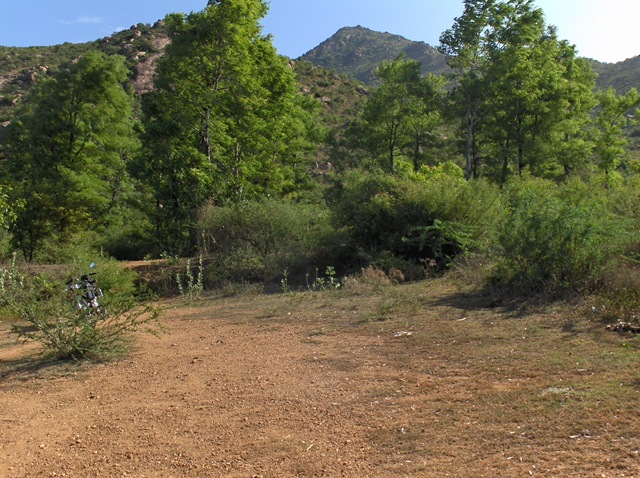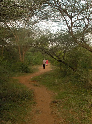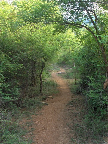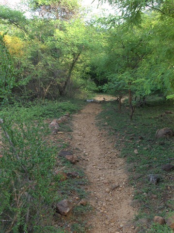 Parvati Hill, looking of one of the several small lakes found in this section of the path. These are behind earth berms, and I think are intended to help bring water back into the underground water table. It is early monsoon season now, and there is some water in this tank, which has been dry for the summer months (starting in April).
