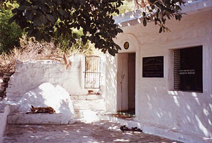 Sri Ramana lived at Skandashram from 1916 to 1922. His mother joined him during this period, and for the first time cooking was done there. This is where the mother had her maha samadhi in 1922. Her room is now a shrine.