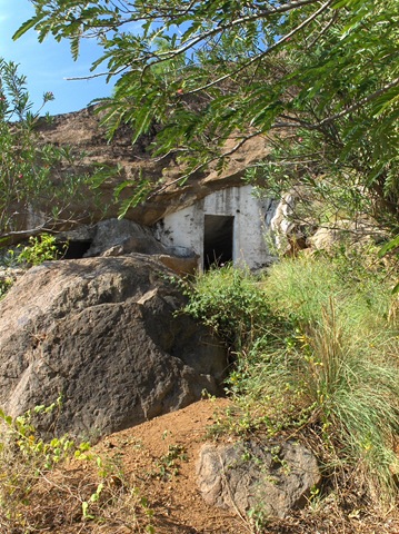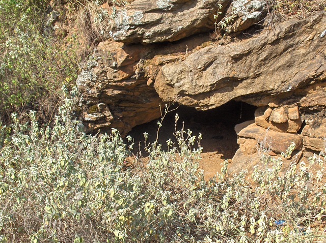 I put quotes around the first instance of ‘caves’ since what are called caves here are often nothing more than a sheltered space under a big rock. Some are natural, some have been improved, usually by building walls and adding a concrete floor. Some have been dug out under rocks.