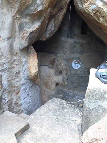 Many bags of cement were carried up the hill to make these cave improvements. Aum Amma lived her for several years until just a few years ago.