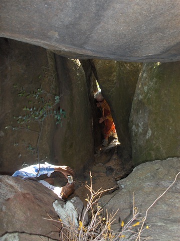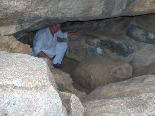 This is Kattu Siva’s cave. A big rock, in front of Richard, has fallen into the cave. Will someone be able to remove it?