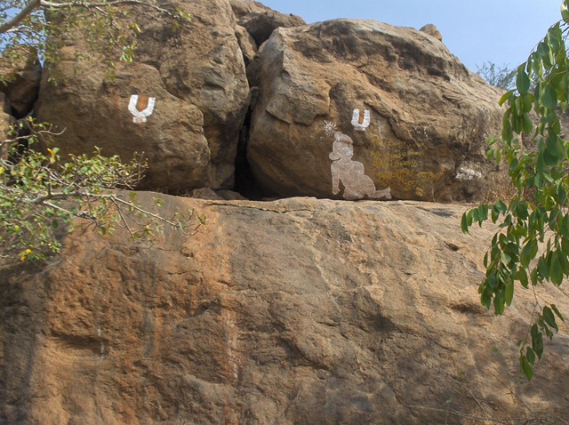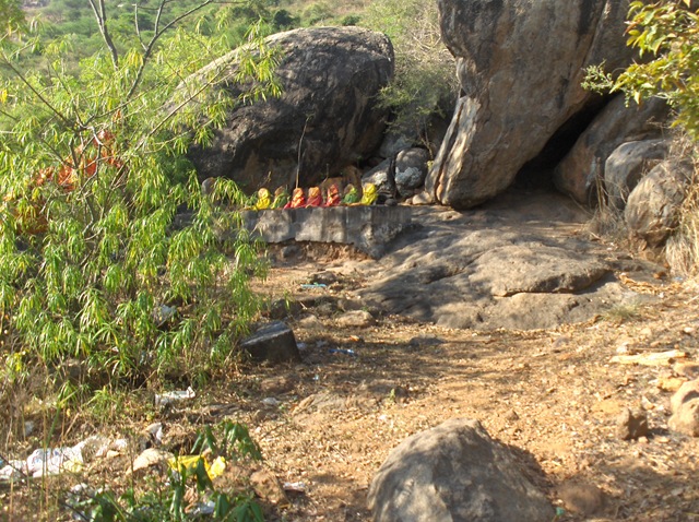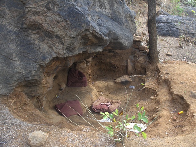 This cave is said by local villagers to be one used by Ramana in the early days. Recently, people have built walls and a door and an altar in it.