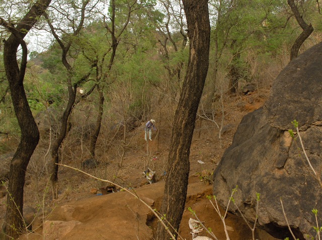 From places like Pavala Kundru, Tortoise Cave can be seen as a dark triangle up on the mountain. It is a bit of a climb to get up here. We think it is worth it. You will want to take a Mountain Guide the first time, I think.