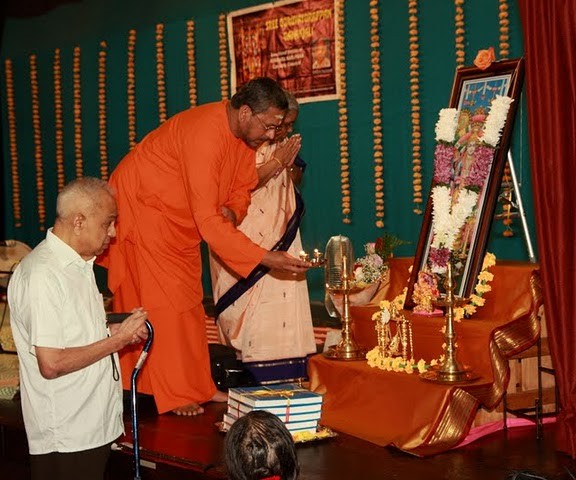 Swami Siddhanandaji was kind enough to offer the blessings for the book release and Sundara Narayana received those blessings with bowed head and overflowing heart. What he could not say in words, limited now by the effects of his recent strokes, emanated from his eyes, speaking volumes, alive with all the things he could not say. There is a certain look someone has when Grace is flowing and he had this look.