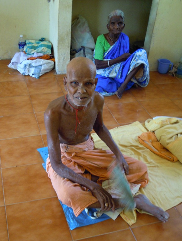Sadhus give their lives to God. Renouncing family, home, and possessions, they live only on what is given to them. When they are healthy, this life has many hardships; when they are old, infirm, and disabled, it is nearly impossible.