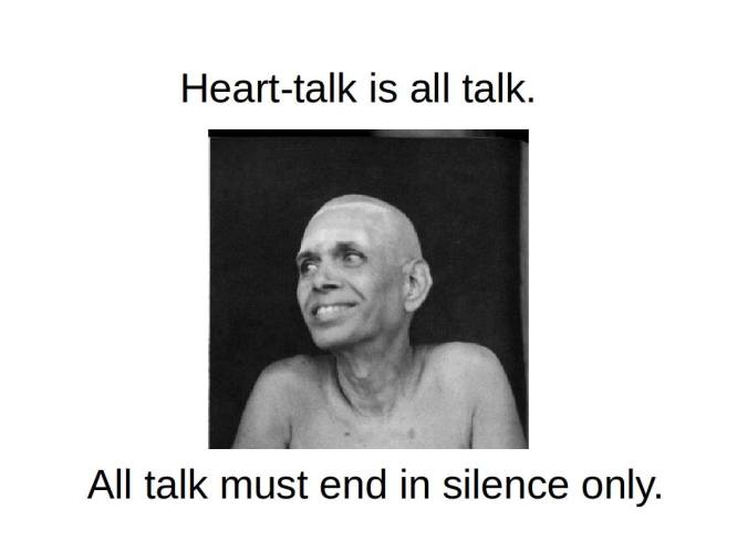 Sri Bhagavan said, “All finished. Heart-talk is all talk. All talk must end in silence only.”