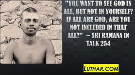 “Whether you make dhyana of God or of Self, it is immaterial. The goal is the same. But you cannot escape the Self. You want to see God in all, but not in yourself? If all are God, are you not included in that all?” Sri Ramana speaking in Talk 254 (Talks with Sri Ramana Maharshi).