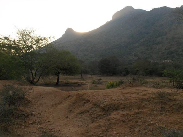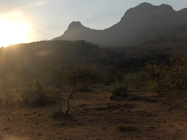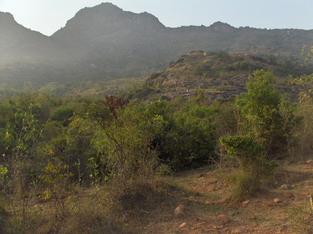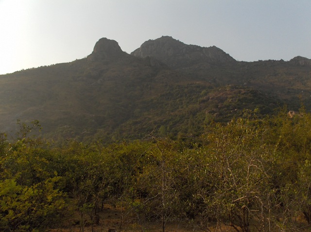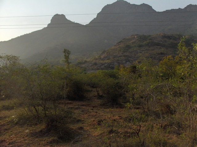 Here is a clearer view of the Arunachala peak. The trunk element of The Elephant rises on the right of the peak.
